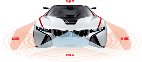 360度全景泊車(chē)影像通過(guò)安裝在車(chē)身前后左右的4個(gè)廣角攝像頭,同時(shí)采集車(chē)輛四周的影像,經(jīng)過(guò)圖像處理單元矯正和拼接后,形成一幅車(chē)輛四周的全景俯視圖,實(shí)時(shí)傳送到中控臺(tái)的顯示設(shè)備上(如DVD導(dǎo)航)。駕駛員坐在車(chē)中即可直觀地看到車(chē)輛所處的位置以及車(chē)輛周?chē)恼系K物,從容操控車(chē)輛泊車(chē)入位或通過(guò)復(fù)雜路面。