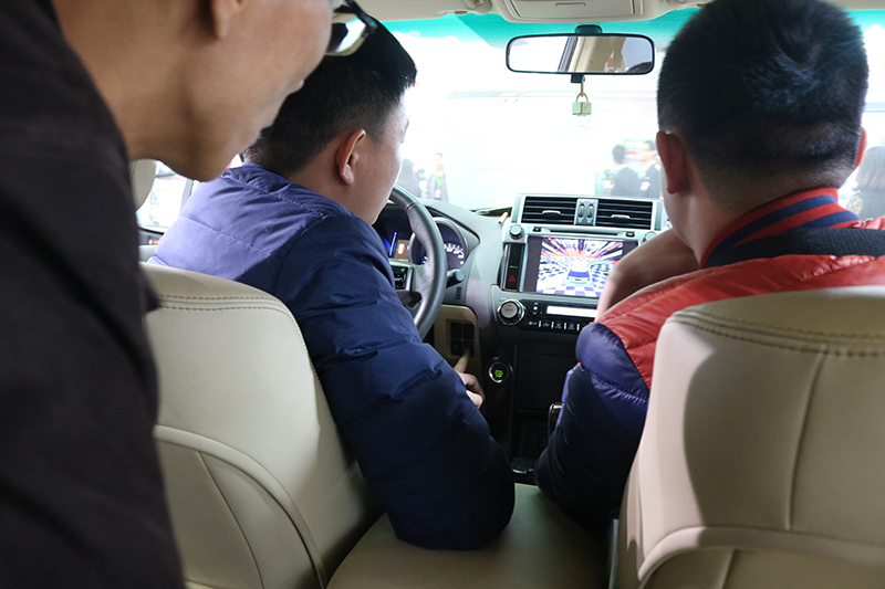 道可視這次展會主推的超清360度全景影像系統(tǒng),其清晰度達到1080P。不僅僅是清晰度的提升,更解決了因為夜視能力不足而困擾車主的夜間泊車、倒車難題;四路攝像頭實時錄像,智能震動鎖定技術,3D全景泊車,24小時不間斷泊車監(jiān)控等功能吸引了一大批客商的駐足參觀,在展車體驗過程中對我們人性化的UI交互設計和便捷的功能操作贊賞有加。