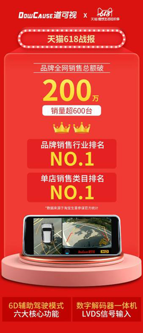 如今在2019年這場(chǎng)618年中大促戰(zhàn)役中,根據(jù)淘寶生意參謀官方統(tǒng)計(jì):道可視品牌全網(wǎng)銷售總額破200萬!銷量超600臺(tái)!