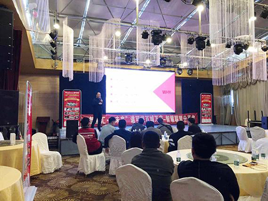 道可視代理商鄭州云游汽車(chē)銷(xiāo)售有限公司趙總率先進(jìn)行道可視智慧聯(lián)盟店政策的主題講演,他表示,2019年道可視將在全國(guó)各省地級(jí)市舉辦多場(chǎng)招商會(huì),共建立超4000家智慧聯(lián)盟店,他從門(mén)店產(chǎn)品的售前準(zhǔn)備、售中執(zhí)行、售后服務(wù)三個(gè)層面進(jìn)行了更細(xì)致化的闡述。