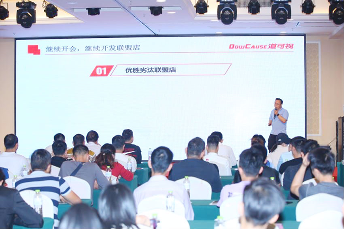 會(huì)議伊始,道可視南寧代理商莫總作為東道主上臺(tái)致辭,他向參會(huì)的渠道伙伴及嘉賓的到來(lái)表示歡迎和感謝,并簡(jiǎn)要分析了當(dāng)?shù)厥袌?chǎng)及門(mén)店運(yùn)營(yíng)的發(fā)展情況。