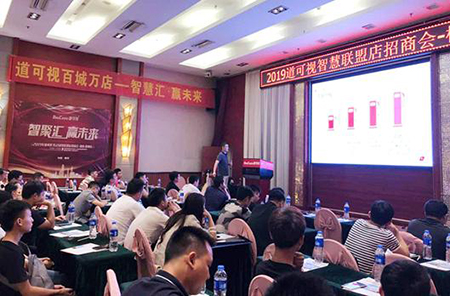 隨后,針對于大家所關(guān)注的“智慧聯(lián)盟店”,道可視大區(qū)經(jīng)理伍招權(quán)進(jìn)行了重點介紹,他從市場體系、加盟方案、銷售模式和加盟優(yōu)勢四個維度進(jìn)行了詳細(xì)宣講,引起現(xiàn)場終端門店的極大興趣。